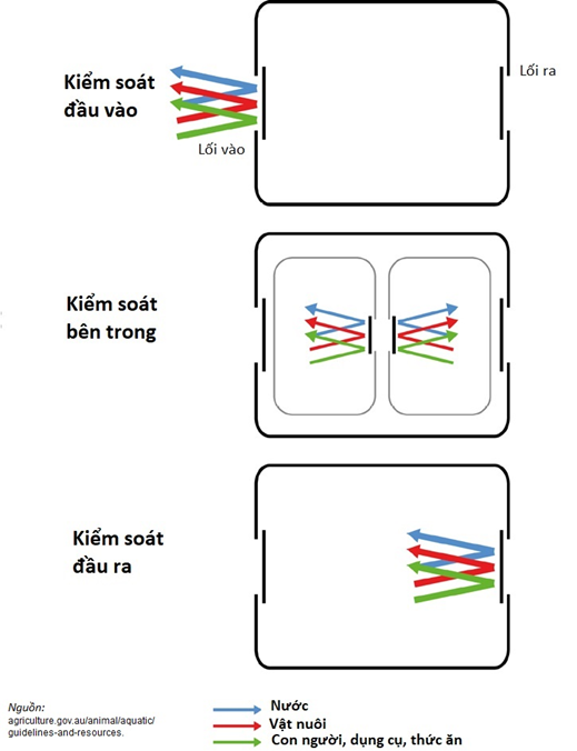 - Giảm thiểu nguy cơ mầm bệnh xâm nhập vào ao/khu nuôi (kiểm soát đầu vào)