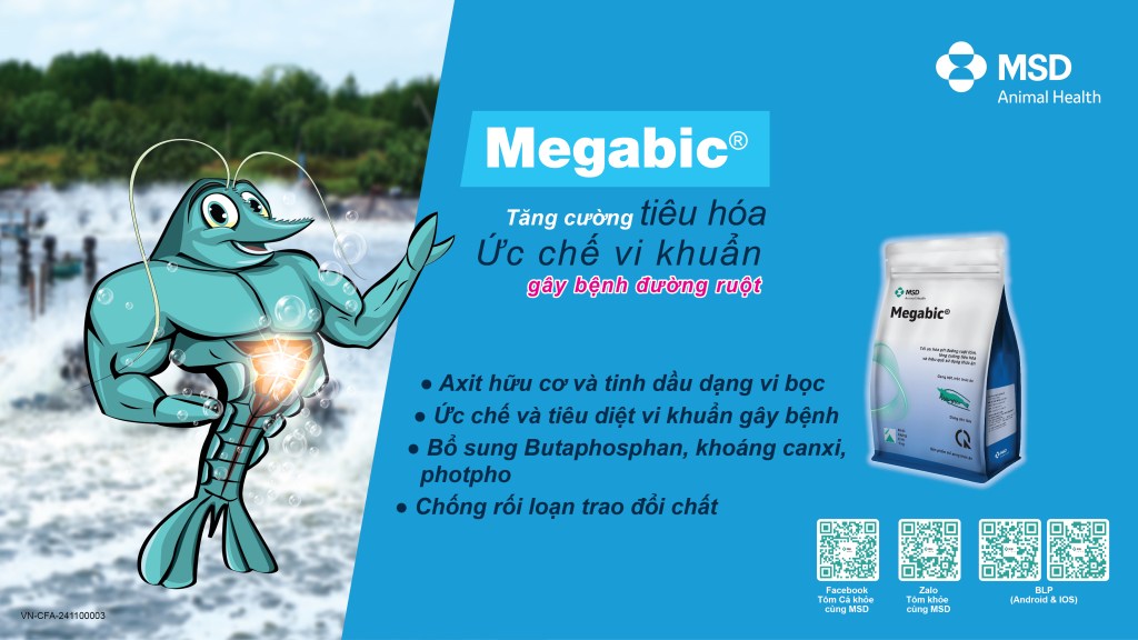 Công thức axit hữu cơ dạng vi bọc giúp giảm pH đường ruột, ức chế sự phát triển của vi khuẩn Vibrio, kích thích tiêu hóa, tăng sự ngon miệng.