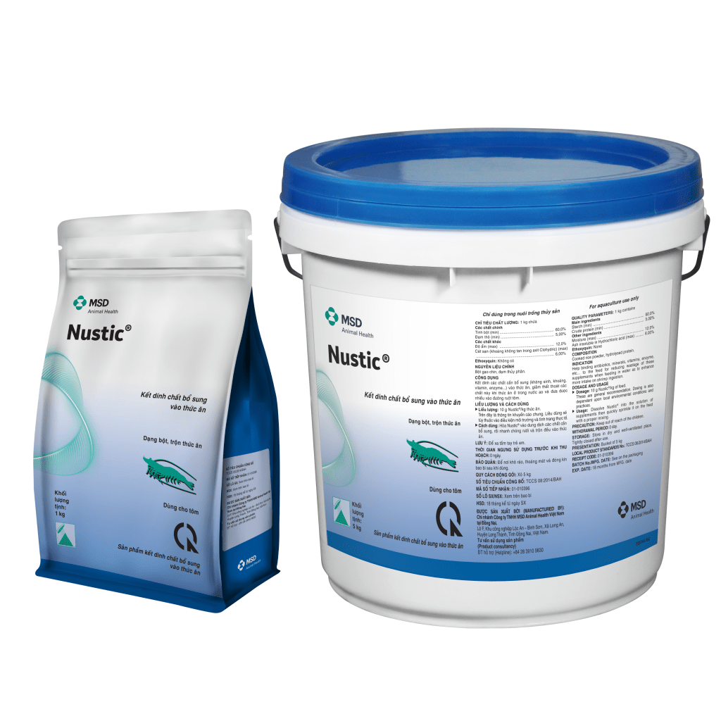 - Nustic® là chất kết dính tự nhiên được sản xuất từ tinh bột nên không ảnh hưởng đến đường ruột và quá trình tiêu hóa của tôm.