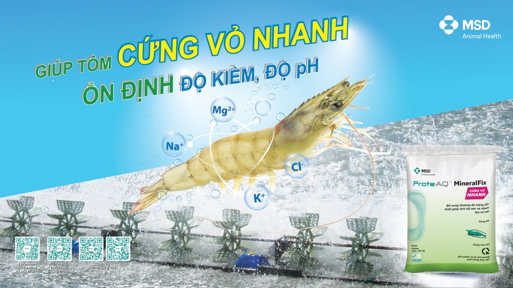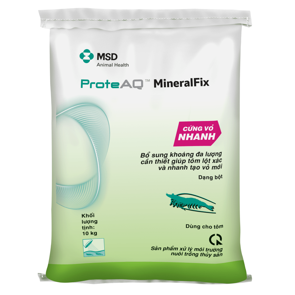 Lưu ý: dùng kết hợp ProteAQ™ MineralFix và ProteAQ™ Stomi® giúp hiệu quả vượt trộ. Đặc biệt khi mới thả tôm và trước khi thu hoạch.