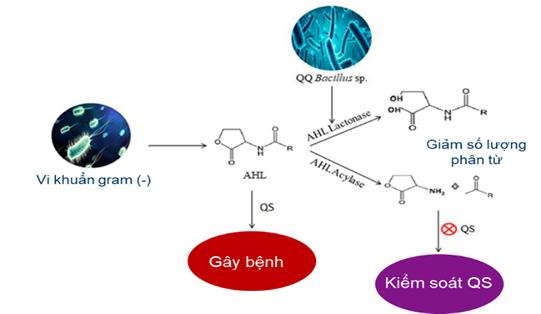Các nhà khoa học trên thế giới đã nghiên cứu những cách tiếp cận trong việc bẻ gãy phân tử tín hiệu AHL như là biện pháp hữu hiệu để kiểm soát độc lực ở nhóm vi khuẩn Gram âm gây bệnh, đặc biệt là nhóm vi khuẩn gây bệnh trong thủy sản. Trong đó, quá trình phân hủy sinh học đối với phân tử tín hiệu AHL được xem là cách tiếp cận được ứng dụng phổ biến nhất. Quá trình này có thể được thực hiện bằng phương pháp phân lập các chủng vi khuẩn có khả năng sinh enzyme phân hủy quorum sensing.