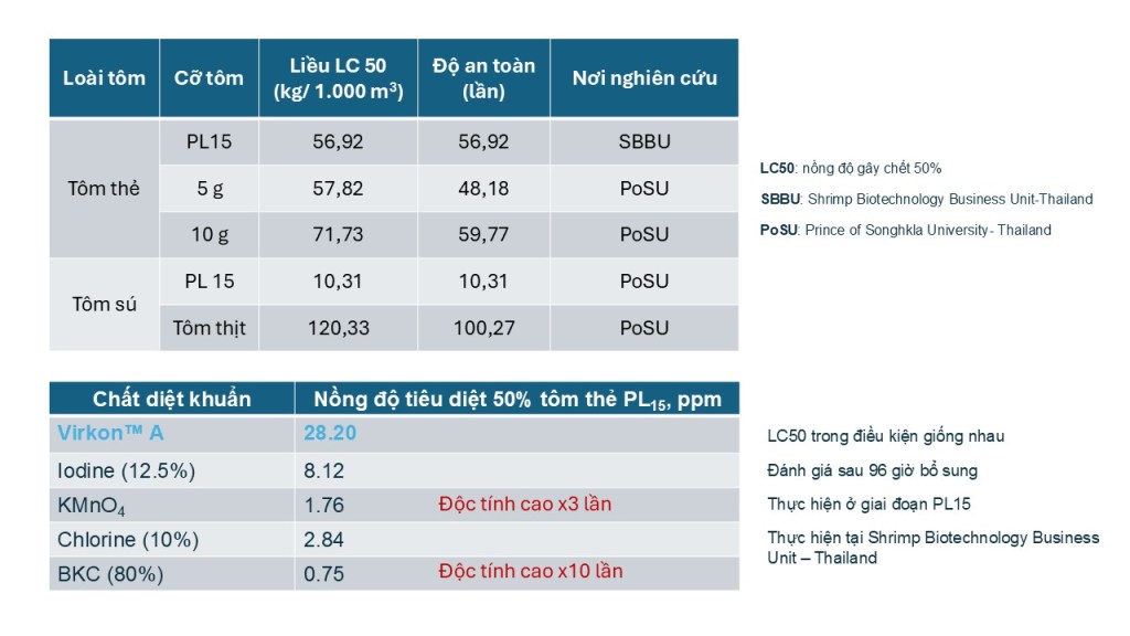 - Độ an toàn của KMPS (thành phần của Virkon™ A) với các kích cỡ tôm